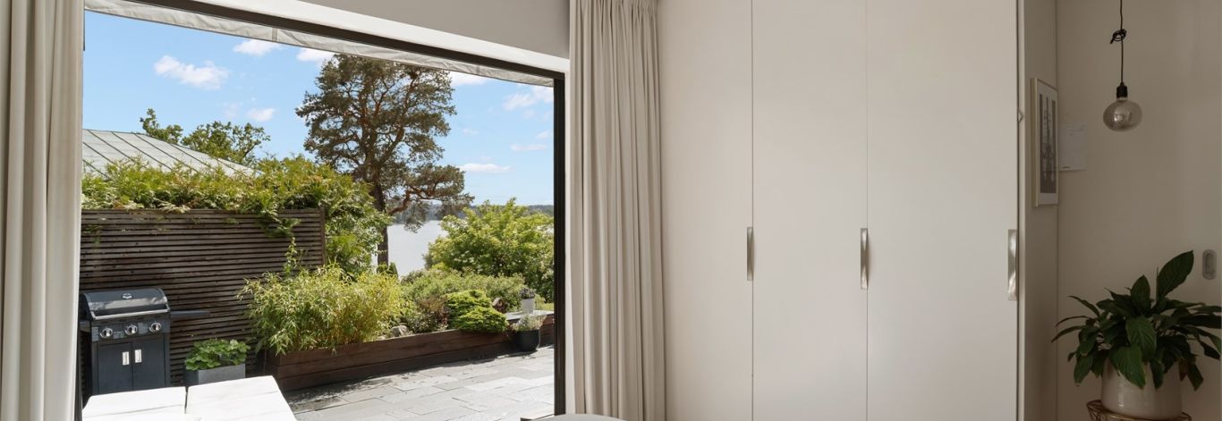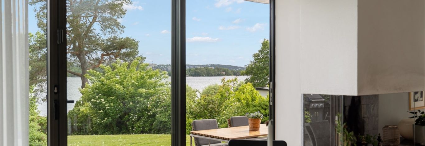 Enplanshus med sjöutsikt och stora glasfönster ut mot terass i söder. Nära vatten och natur. Tre sovrum och två badrum ensuite med bastu. Väl preppat kök med alla maskiner. Tvättmaskin/Tumlare. TV i alla rum. Parkeringsplats utanför för två bilar. 13 min med bil till city och kommunikationer nära. Golvvärme, fiber, el ingår. El laddstolpe finns.